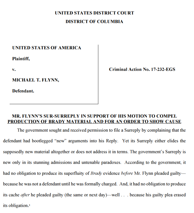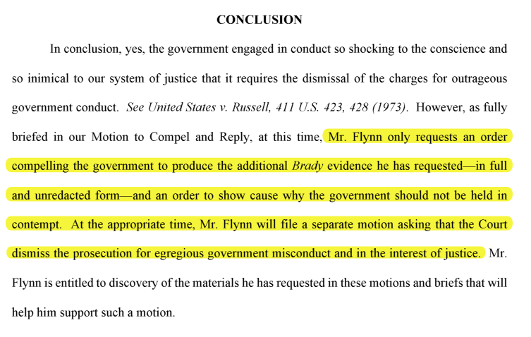 2) “At the appropriate time, Flynn will file a separate motion asking that the Court dismiss the prosecution for egregious gov’t misconduct and in the interest of justice.” pic.twitter.com/q8bUcOU0T2