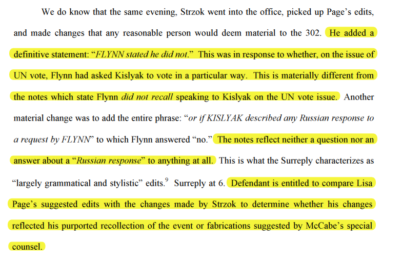 Argument: Flynn is entitled to compare the Lisa Page edits with the Strzok changes.