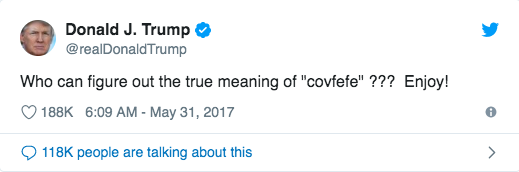 - President Trump tweeted “Covfefe” and nobody knew what he meant. If you googled the word you couldn’t find it. Now we know that the reason you couldn’t find it is because Google had it erased from its social platform!
