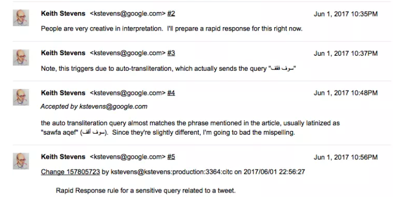 Leaked documents, titled ‘covfefe Translate Easter egg,’ reveal how Google raced to scrub the Arabic word “covfefe” and it’s meaning “I will stand up.” According to the document they knew the meaning of the Arabic word. Despite that, they set out to replace it with a shrug emoji. pic.twitter.com/Cvc3frJWA4